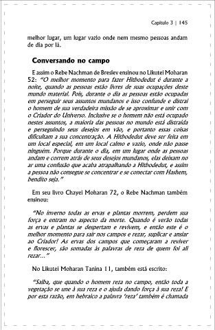de ir na floresta e fazer Hitbodedut. Se possível, o ideal seria   “Saiba, que quando o homem reza no campo, então toda a