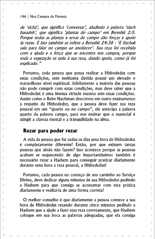 toda a vegetação se uniu à sua reza, dando apoio, como já foi                   forças para seguir em frente,  assim  também  é  a Hitbodedut.