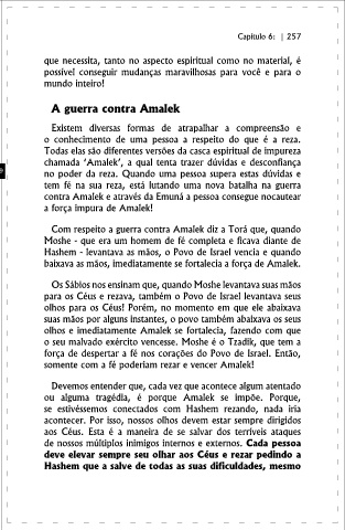 si mesma pelos seus fracassos, caindo no desespero. E o que ou alguma tragédia, é porque Amalek se impõe. Porque,