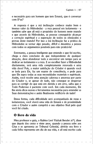 controle de sua própria má inclinação! E o seu principal conselho imenso valor da Hitbodedut - a reza pessoal em isolamento - e