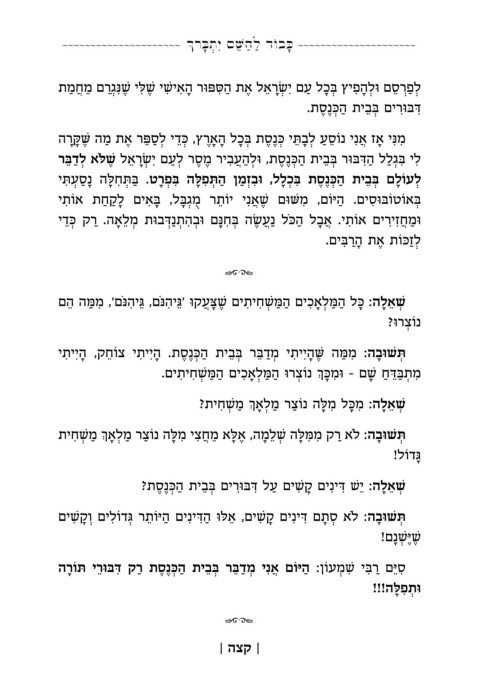 הרוֹתּ ירוּבּדּ קר תסנכּה תיבבּ רבּדמ ינא םוֹיּה ַ :ןוֹעמשׁ יבּר םיּס ִ