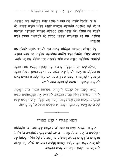 ,תסנכּה תיבּ דוֹבכוּ תשּׁדקבּ קזּחתהל וּנמצע לע לבּקל וּנילע ָ