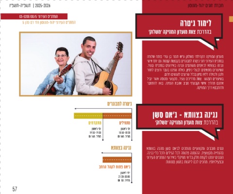 03-5205100/5 ינוריעה ס"נתמה !םכתא תוארל הכחמ 'ץיבוביל לאירא תכרדהב הניגנב הרישה תא הוולתש הניגנ תארוהב החמתמ ,תונייטצהב יקסניול רנימס תרגוב 'ץיבוביל לאירא תכרדהב .יעוצקמ עקר ילב םג – תחאו דחא לכל םיאתמ .תבייחמ אלו הנהמ הריוואב לוכהו – לוקו העימש ,בצק רפשנ ,םיילקיזומ תונונגס ריכנ ,הינומרהב רישל דמלנ םישגפמב .אתווצב רישל הרישעמו הלילק ,המח תרגסמ םישפחמו הרישו הקיזומ םיבהואש םירגובמל גוח אוה הרישה ןיב ןושאר ימי 22:00-20:30 ₪ 250 :ריחמ +20 יליג םירגובמ ישילש ימי םירגובמ 19:50-18:50 ₪ 100 :ריחמ הלבק ןחבמ ע