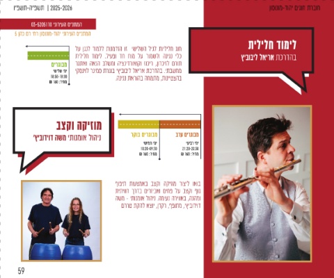 ינוריעה ס“נתמב םירגובמל העונתו טרופס יגוח 45 ו"פשת-ה״פשת | 2025-2026 M M Y Y M C C M Y Y C C ו"פשת-ה״פשת | 2025-2026 לטנזור הינוס תכרדהב תינגרוא דומיל ץיבוביל לאירא תכרדהב 6-4 יליגל הקיזומתיר ישילש ימי 6-4 יליג 17:50-17:00 ₪ 160 :ריחמ ישילש ימי םירגובמ תינגרוא 18:45-17:55 ₪ 160 :ריחמ ךשמהב הניגנ ילכ ידומילל הנכהכ ןוסונומ-דוהי םיגוח תרבוח 5 ןהכ םר 'חר ןוסונומ-דוהי ינוריעה ס״נתמה ו"פשת-ה״פשת | 2025-2026 ,תוצעומה תירב תדילי ,תיאקיזומ איה הינוס הרומה .תדבכמו הליכמ הריוואב ,המר יפל תונטק תוצובקב ,םדוק עקר אלל