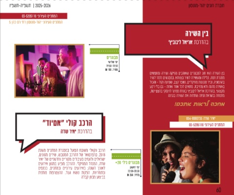 יעיברו ןושאר ימי יעיברו ןושאר ימי ישימחו ינש ימי ישימחו ימי ישילש ימי תבהא .ריעב ךוניחהו הליהקה ייחב דאמ ברועמש ,השולשל עקר ילב םג – תחאו דחא לכל םיאתמ .תבייחמ אלו הנהמ הריוואב שדחתמ יונמ ₪ 229 17:00 :הנושאר הצובק ג"ק 62 המצעב הדרי הנוכנ הליכא ילגרהל הסונמ תוצובק