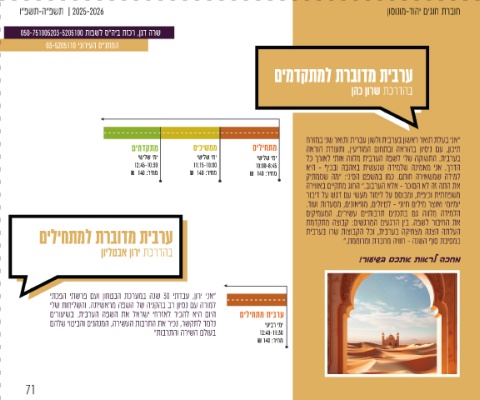 ש"צומו ישימח ימי יעיבר םוי יעיברו ןושאר ימי יעיברו ןושאר ימי יעוצקמ ןודעומל חתפתמו ךלוהש ןוסונומ -דוהיב ןודעומה תא ליבומ ישילש ימי ישילש ימי ישילש ימי לכ ךרואל יתוא הוולמ תיברעה הפשל ילש הקושתה .תיברעב תבלשמה ,תרגתאמו תידוחיי תוליעפ איה תיריוואה הקיטבורקאה