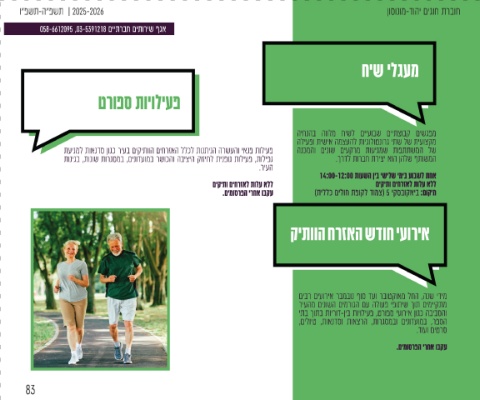058-6612095 ,03-5391218 םייתרבח םיתוריש ףגא   םיינוריע םיעוריא ,םיסקטב ,תועפוהב םיפתתשמ ,תיעוצקמ   הייחנהב  םירשש    הריש  יבהוא  םיקיתו  םיחרזא  תלהקמ  .קיתוה  .םימוסרפה ירחא ובקע  תויתרבחה תותשרבו  2 בלקמ ,ל"יש :םוקימ  ונידאל תלהקמ  םיקיתו םיחרזאל שדוחל ₪ 100  ןוסונומ-דוהי םיגוח תרבוח  ו"פשת-ה״פשת  | 2025-2026  ו"פשת-ה״פשת  | 2025-2026  ”דחיב םיחתפמ” בחרמב הייווח  ךרה ליגה תליהקל דעוימה ירובמי’ג  18:00 –16:45 תועשה ןיב ישילש ימי  ילקיזומ ירובמי’ג  .העונתב הקיסומ ,תוקד 20 לש שגפמ ללוכ  םינש שולש דע הנש יצח יליגמ םיאתמ  יל