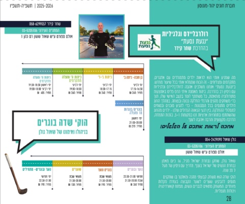 050-751005203-5205100 תופשל ס"היב תזכר ,ןגד הרש ינש ימי יעיבר ימי תולע אלל 12:00-9:00 תולע אלל םירגובמ ןושאר ימי 12:00-9:30 19:00-17:00 1 הצובק ₪ 150 :ריחמ . ישפוח לוגרת גוחה יפתתשמל ישילש ימי 10:30-8:30 2 הצובק .תובדנתהב ₪ 150 :ריחמ ״תיתורחתה המבל דעו ןושארה רועישהמ ישימח ימי 10:30-8:30 3 הצובק ₪ 150 :ריחמ םיבדנתמ תכרדהב ןחלוש יקחשמ ןוסונומ-דוהי םיגוח תרבוח ותוא םיזכרמ רשא םיבדנתמ םיאלמג ידי לע להונמ םיקחשמה ןודעומ .דועו הלקנמ ,שב-שש ,הקמד ,'גדירב ,ימר :קחשל ןתינ .ןחלוש יקחשמ ידכ ךות תויביטנגוקה תויונמ