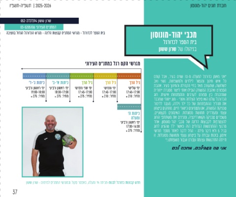 יעיברו ןושאר ימי יעיברו ןושאר ימי ישימחו ינש ימי ישימחו ימי ישילש ימי תבהא .ריעב ךוניחהו הליהקה ייחב דאמ ברועמש ,השולשל עקר ילב םג – תחאו דחא לכל םיאתמ .תבייחמ אלו הנהמ הריוואב