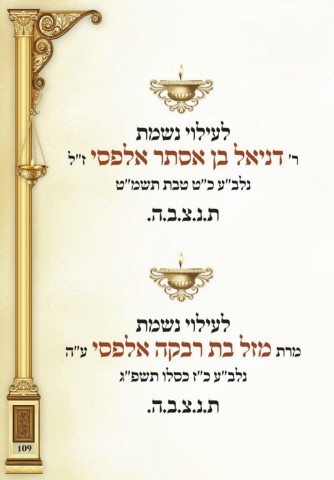 תמשנ יוליעל ל״ז יספלא רתסא ןב לאינד ׳ר ט״משת תבט ט״כ ע״בלנ .ה.ב.צ.נ.ת תמשנ יוליעל ה״ע יספלא הקבר תב לזמ תרמ ג״פשת ולסכ ז״כ ע״בלנ .ה.ב.צ.נ.ת 109