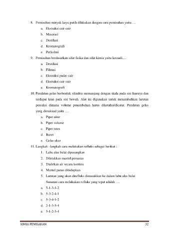 8. Pemisahan minyak kayu putih dilakukan dengan cara pemisahan yaitu….