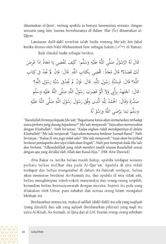 bertanya.:”Kalau di situ juga tidak ada? “Mu’adz menjawab:”Saya akan berijtihad