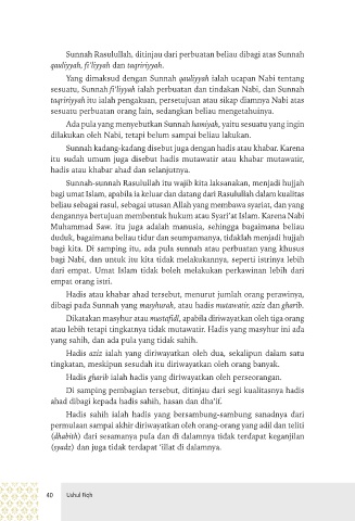 dibagi pada Sunnah yang masyhurah, atau hadis mutawatir, aziz dan gharib.