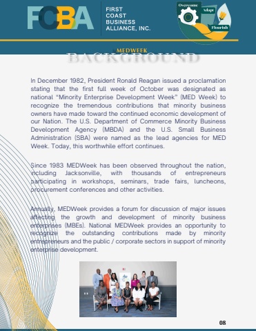 InDecember1982,Prstatingthatthefirstnational%u201cMinorityEntrecognizethetremeownershavemadetoourNation.TheU.S.DevelopmentAgencAdministration(SBA)Week.Today,thiswoSince1983MEDWeeincludingJacksonviparticipatinginworprocurementconfereAnnually,MEDWeekpaffectingthegrowtenterprises(MBEs).NrecognizetheoutsentrepreneursandtheenterprisedevelopmeMEDBACKG08