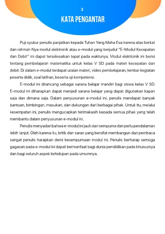 dan rahmat-Nya modul elektronik atau e-modul yang berjudul “E-Modul Kecepatan