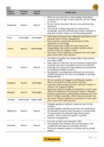 Singapore Neutral Overweight which can benefit from the cyclical recovery.