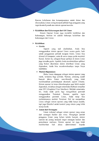 Sistem Operasi Linux juga memiliki kelebihan dan