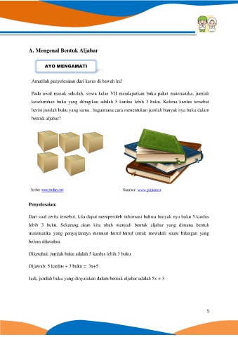 Dijawab: 5 kardus + 3 buku = 3x+5