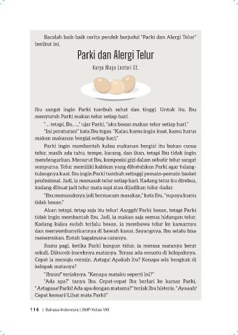 Bacalah baik-baik cerita pendek berjudul “Parki dan Alergi Telur”