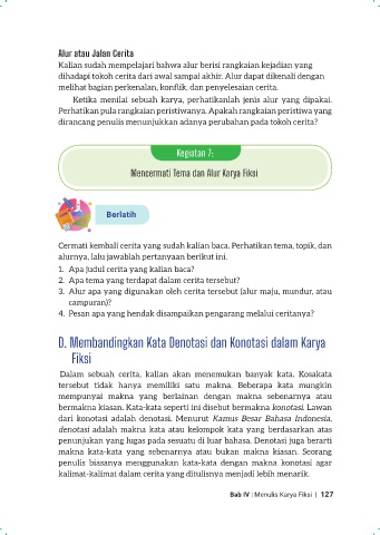 melihat bagian perkenalan, konflik, dan penyelesaian cerita.