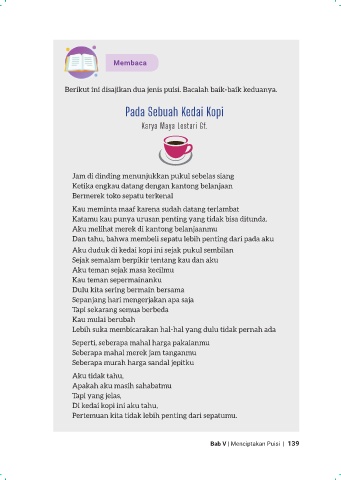 Berikut ini disajikan dua jenis puisi. Bacalah baik-baik keduanya.