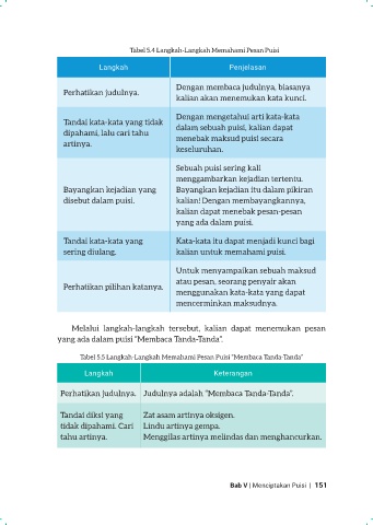 Tabel 5.5 Langkah-Langkah Memahami Pesan Puisi “Membaca Tanda-Tanda”