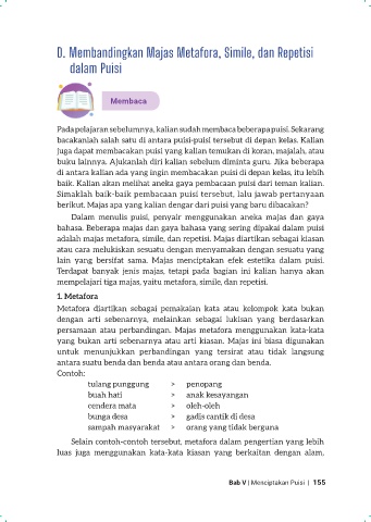 mempelajari tiga majas, yaitu metafora, simile, dan repetisi.