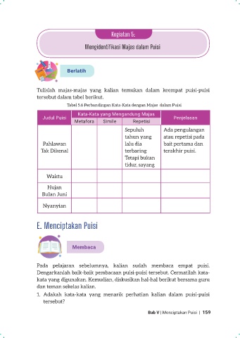 Tabel 5.6 Perbandingan Kata-Kata dengan Majas dalam Puisi