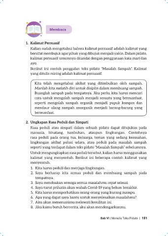 seperti yang terdapat dalam teks pidato “Masalah Sampah” sebelumnya.