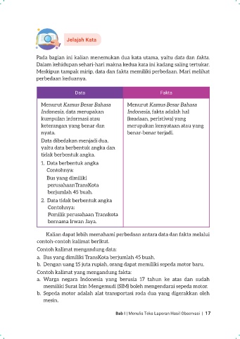 Pada bagian ini kalian menemukan dua kata utama, yaitu data dan fakta.