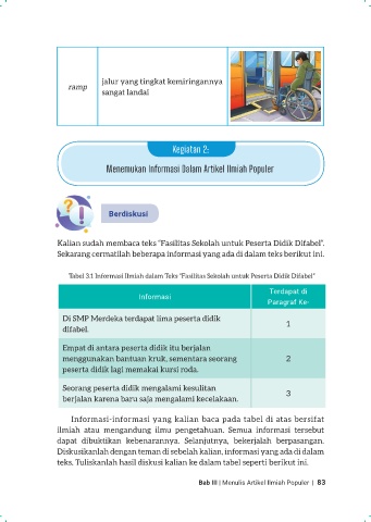 Tabel 3.1 Informasi Ilmiah dalam Teks “Fasilitas Sekolah untuk Peserta Didik Difabel”