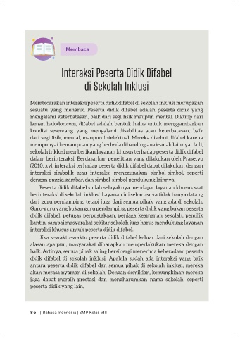 Membicarakan interaksi peserta didik difabel di sekolah inklusi merupakan