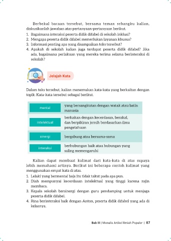 Dalam teks tersebut, kalian menemukan kata-kata yang berkaitan dengan
