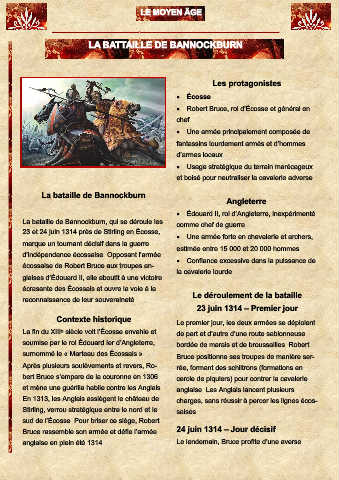 bert Bruce s’empare de la couronne en 1306 cercle de piquiers) pour contrer la cavalerie