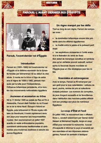 Farouk, l’avant-dernier roi d’Égypte et à la libération du canal de Suez