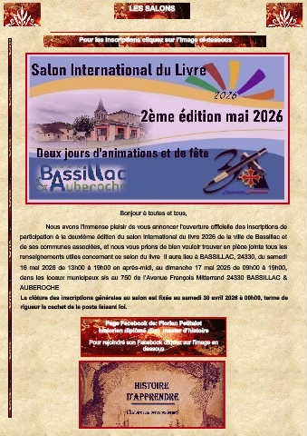 renseignements utiles concernant ce salon du livre. Il aura lieu à BASSILLAC, 24330, du samedi