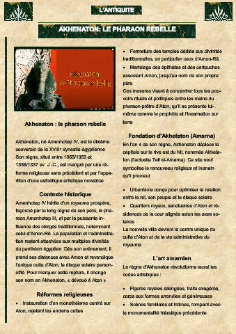 l’unique culte d’Aton, le disque solaire person- Le règne d’Akhenaton révolutionne aussi les
