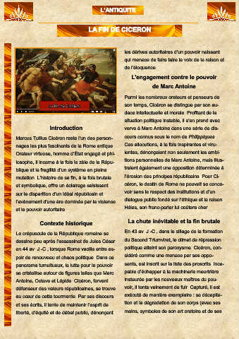 Antoine, Octave et Lépide. Cicéron, fervent instaurée par les nouveaux maîtres du pou-