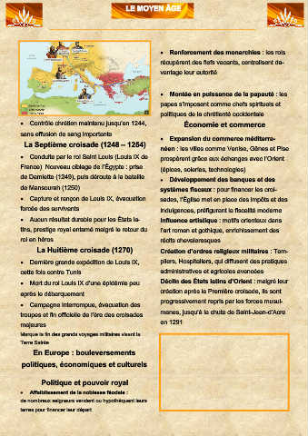 • Capture et rançon de Louis IX, évacuation sades, l’Église met en place des impôts et des