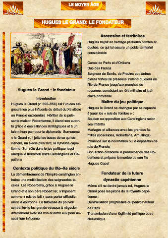 Hugues le Grand : le fondateur royaume, concédant un rôle militaire et judi-