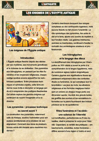 et la richesse de sa civilisation. Des pyramides      compréhension de la langue égyptienne, mais