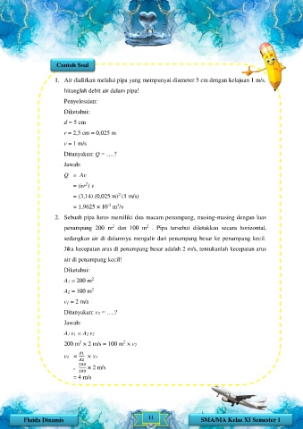 1. Air dialirkan melalui pipa yang mempunyai diameter 5 cm dengan kelajuan 1 m/s.