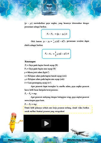 (p1 - p2) menimbulkan gaya angkat, yang besarnya dirumuskan dengan
