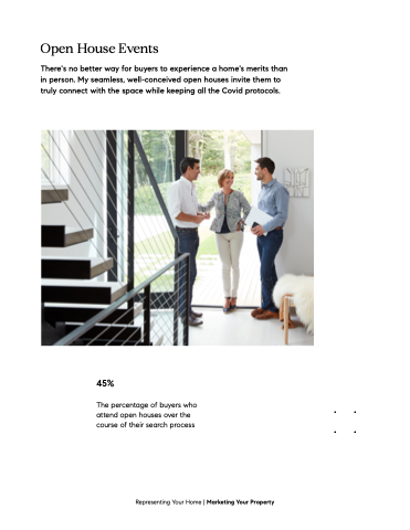 There's no better way for buyers to experience a home's merits than in person. My seamless, well-conceived open houses invite them to truly connect with the space while keeping all the Covid protocols.