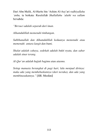 Dari Abu Malik, Al-Harits bin ‗Ashim Al-Asy‘ari radhiyallahu