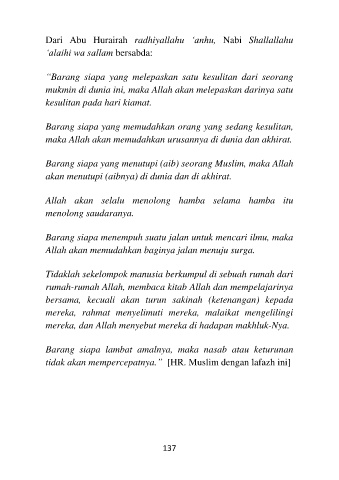 “Barang siapa yang melepaskan satu kesulitan dari seorang