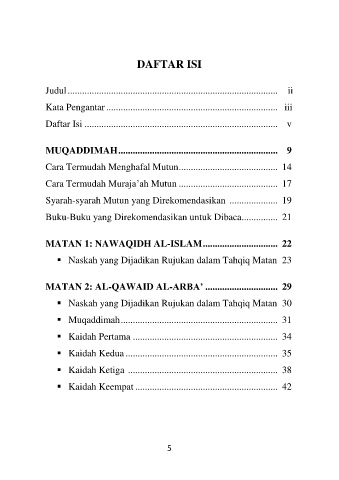 MATAN 1: NAWAQIDH AL-ISLAM ............................... 22