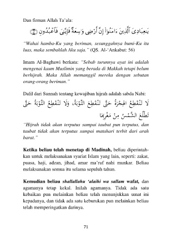 Dalil dari Sunnah tentang kewajiban hijrah adalah sabda Nabi: