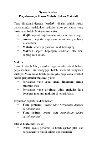 Syarat kedua bolehnya qashar bagi musafir adalah bahwa