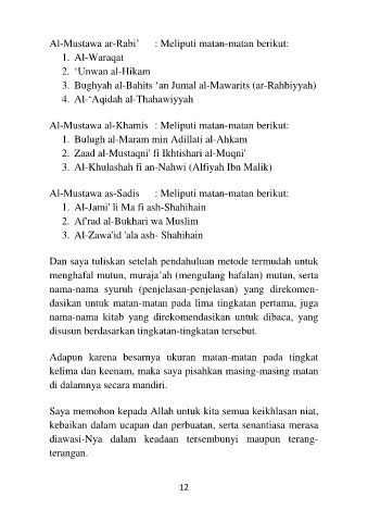 Al-Mustawa ar-Rabi‘ : Meliputi matan-matan berikut: